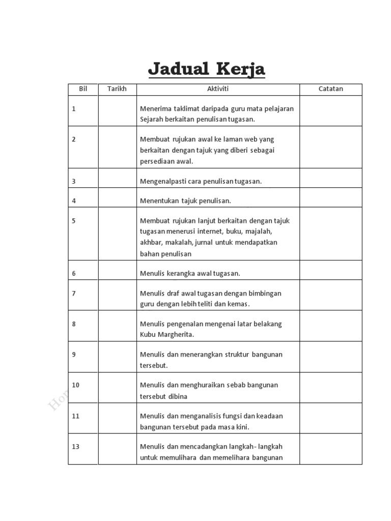 Contoh Jadual Kerja Sejarah Pt3 2018 Senarai Semak Tugasan